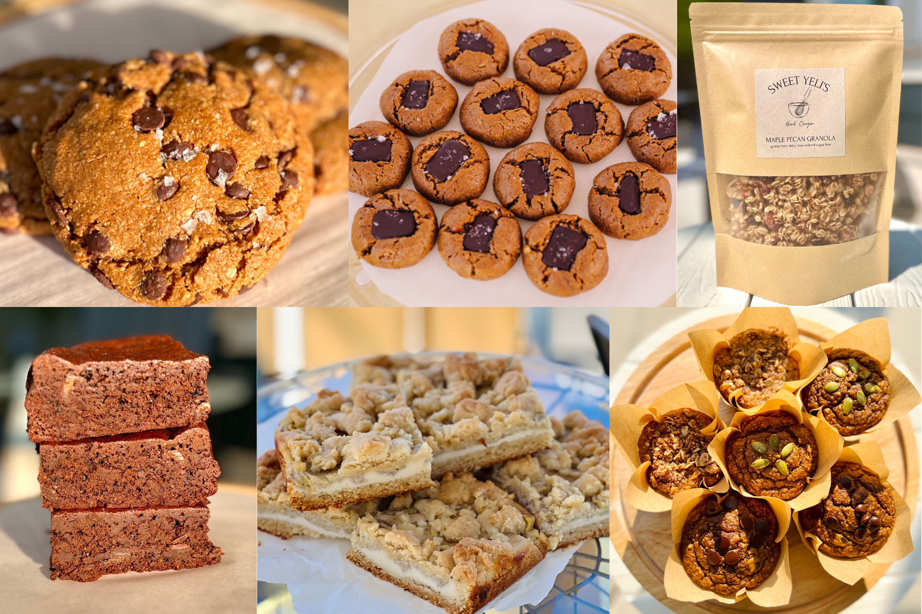 Bakery-style cookies, fudgy brownies, fruit-forward bars, and small-batch treats — all gluten-free, dairy-free, and made without refined sugar, with plenty of vegan options.
